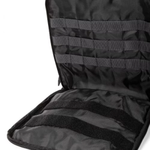 Рюкзак имеет четыре вместительных отделения: передний карман, отделение CCW, основной отсек и отделение под спинкой для гидратора или ноутбука. Передний карман размещает внутри панель MOLLE и ленты-липучки. Они подходят для крепления дополнительных итогов, дополнительно организующих внутреннее пространство. Отделение CCW имеет верхние и боковые входы для максимально оперативного доступа внутри. В комплект к рюкзаку прилагается минималистичная кобура, но можно приобрести универсальную кобуру-вставку 5.11 Tactical® TacTec Holster 2.0.